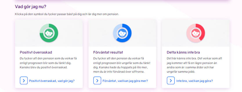 Om din pension verkar vara lägre än andras kan du klicka på den röda gubben under diagrammet. Då kommer du vidare till en sida med tips om hur du kan förbättra din pension.