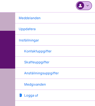 Ingångar till ”Inställningar” och ”Uppdatera” som tidigare fanns synliga i menyn är nu samlade tillsammans med ”Logga ut” och ”Meddelanden” i ”Mitt konto” i höger hörn på inloggade sidor.