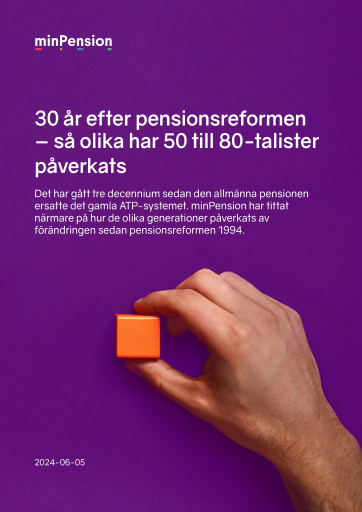 I juni 1994 sa Sveriges riksdag ja till förändrade pensioner. Nu, 30 år senare, ser vi effekterna av klubbslaget i riksdagen. Olika åldersgrupper har påverkats på olika sätt. Det är inte bara den lagstadgade pensionen som förändrats. Minst lika stora förändringar har skett i tjänstepensionerna, där det är arbetsmarknadens parter som förhandlar fram avtalen.