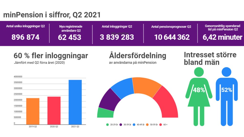När vi summerar användarstatistiken för minPension för kvartal 2 konstaterar vi att intresset för att skaffa koll på den egna pensionen fortsätter öka. Trenden bland unga att kolla på sin pension fortsätter också. Idag är mer än 26 procent av minPensions användare under 40 år.